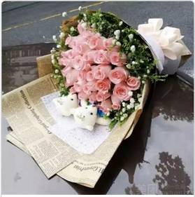 上海花千坊爱上海33朵粉玫加2小熊鲜花束,如图包 |