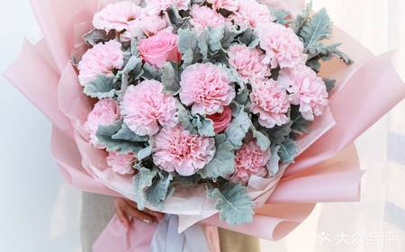 上海花千坊爱上海19朵粉康乃馨2朵粉玫瑰鲜花*3束,如图制作