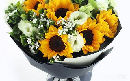 上海花千坊爱上海6朵向日葵加7支白色梗桔花束,如图 |