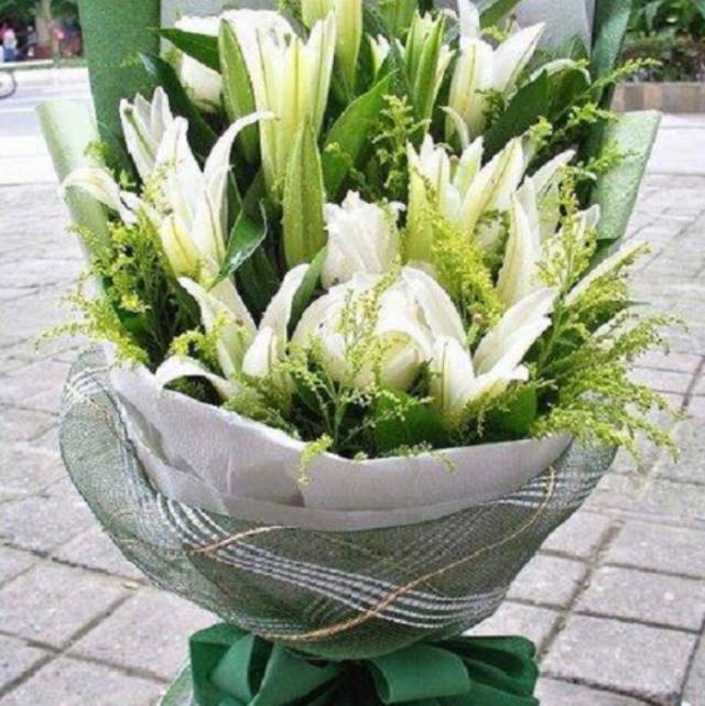 16朵白色百合花束,如图 |