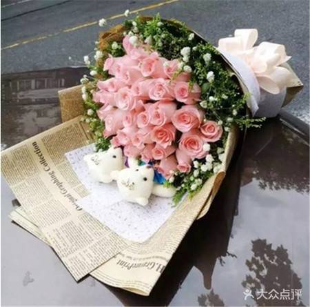 上海花千坊爱上海33朵粉玫2小熊花束,如图包 |