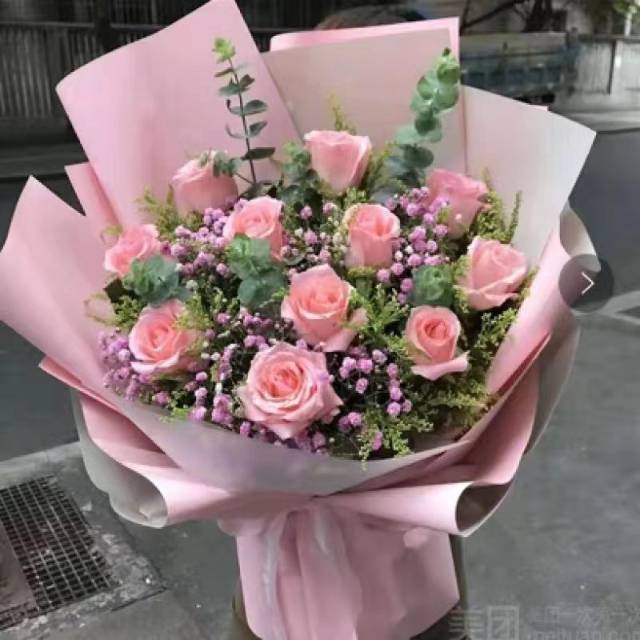 一束:11朵粉玫花束。 另一束:11朵香槟玫花束。如图款式包 |