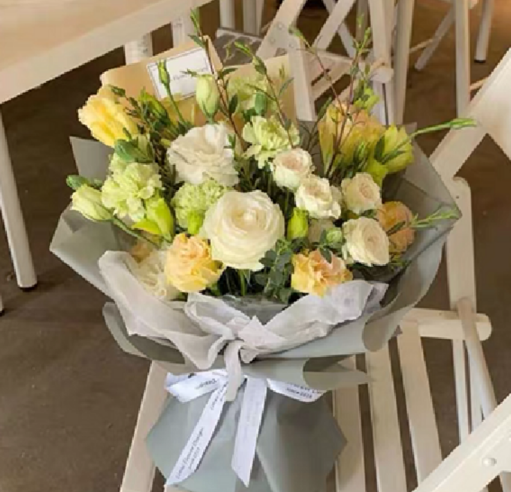 上海花千坊爱上海11朵白玫加白星鲜花束。 |