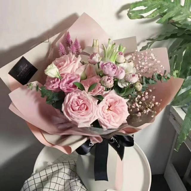 19支粉玫配洋桔梗花束,按图包 |