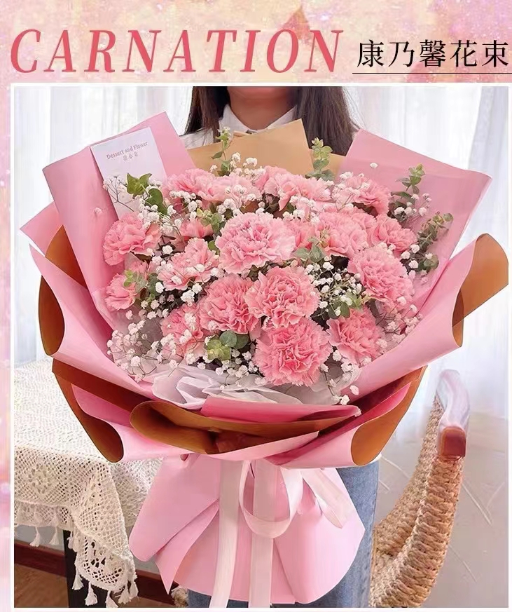 上海花千坊爱上海6粉玫瑰加粉色满天星花束,如图包 |
