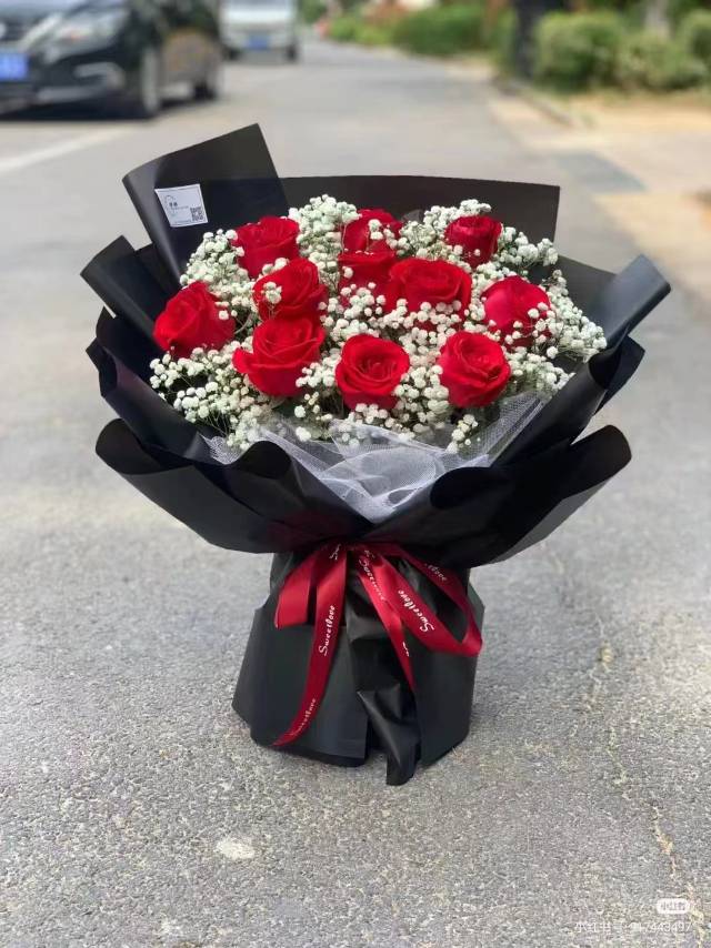 9朵红玫瑰花束(没有相思梅可以换满天星) |