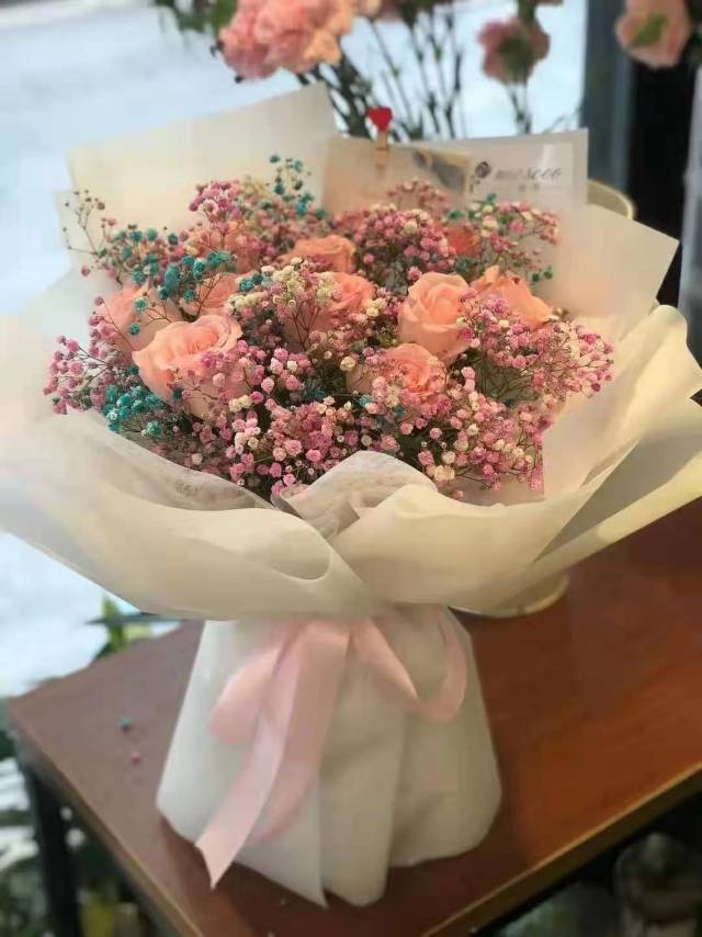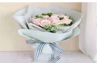 上海花千坊爱上海11支粉玫瑰满天星花束,如图包 |