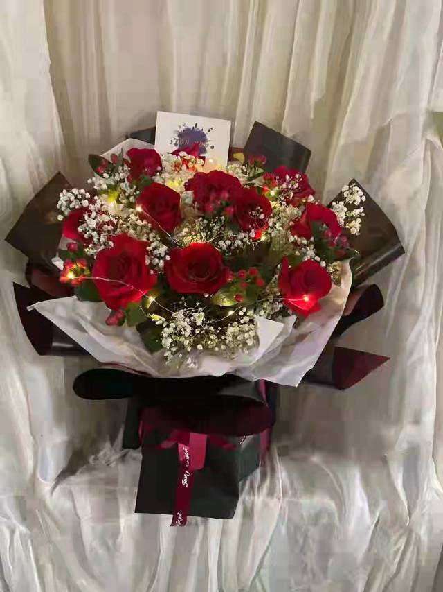 上海花千坊爱上海11支红玫瑰花束带彩灯,按图包 |
