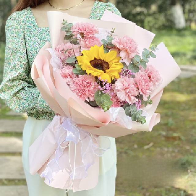 11朵粉康乃馨花束混搭向日葵 按图 |