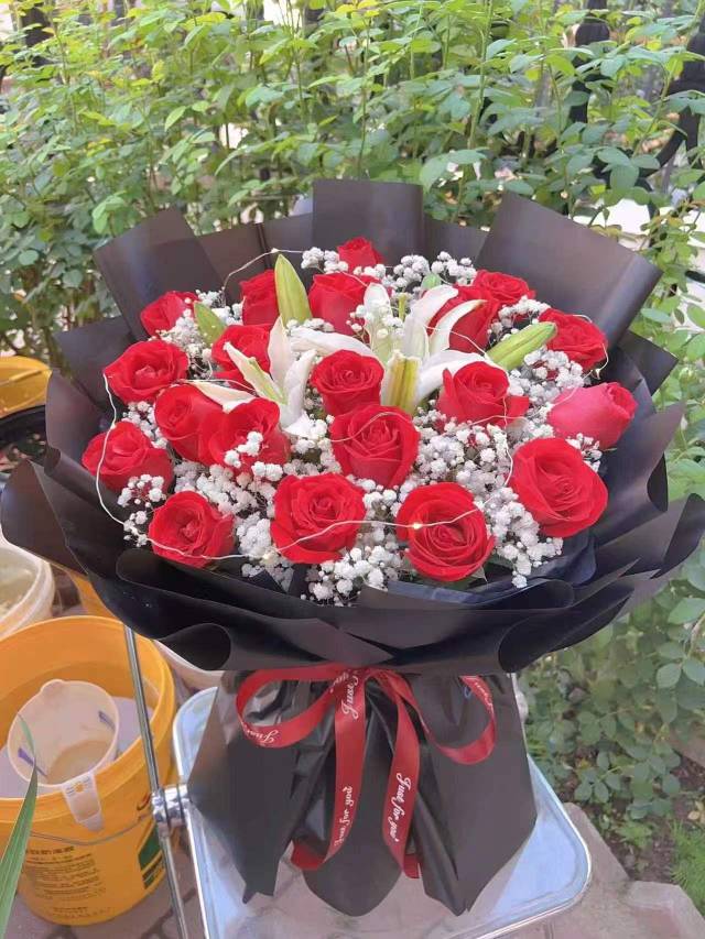 上海花千坊爱上海百合加康乃馨如图再加多两只三头百合,再定一下6寸奶油蛋糕。 |