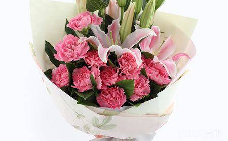 上海花千坊爱上海11支粉色康乃馨2支百合鲜花,如图 |