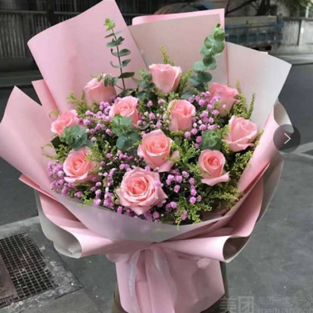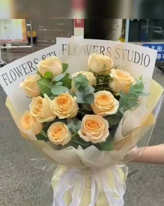上海花千坊爱上海11朵香槟玫瑰配尤加利 |