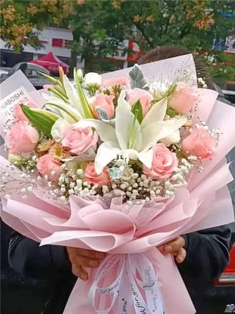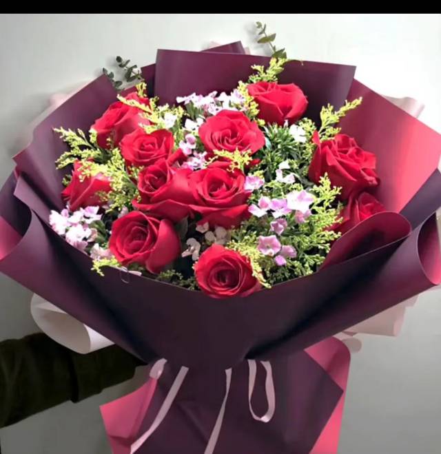 上海花千坊爱上海11朵红玫瑰白色满天星尤加利叶搭配花束 如图包装 |