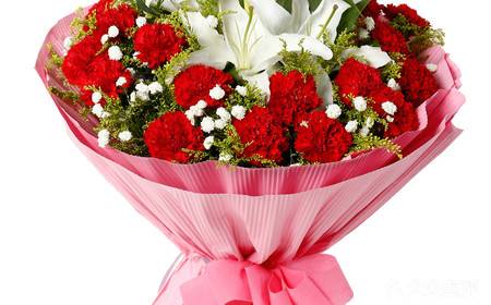 19朵红色康乃馨6朵白色百合鲜花,如图制作 |