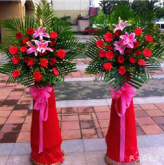 18朵红色扶郎花+3朵粉色百合开业花篮花篮 |