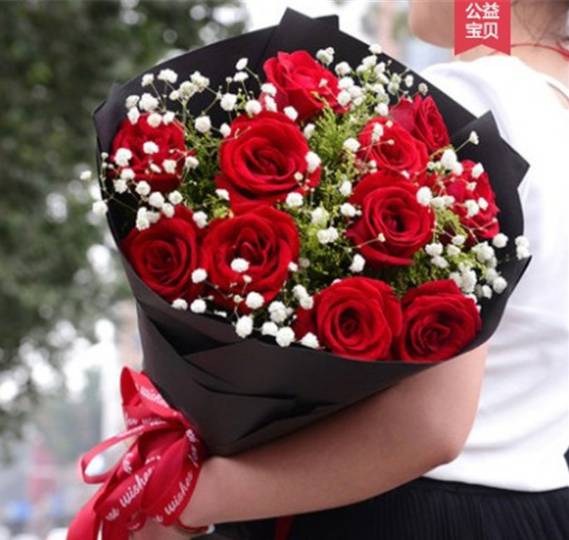 11朵红玫紫色包装(记得紫色包装),如图包装大气好看,有卡片 ,客人自提。 |