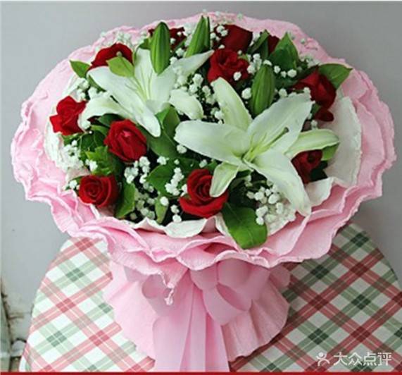 上海花千坊爱上海11朵红玫瑰2支白百合花束 ,如图 |
