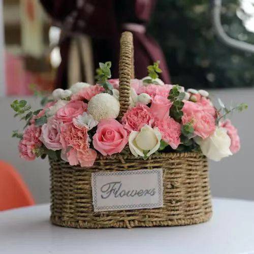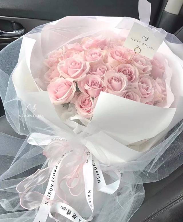 21朵粉玫加白纱鲜花束,如图包 |