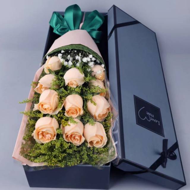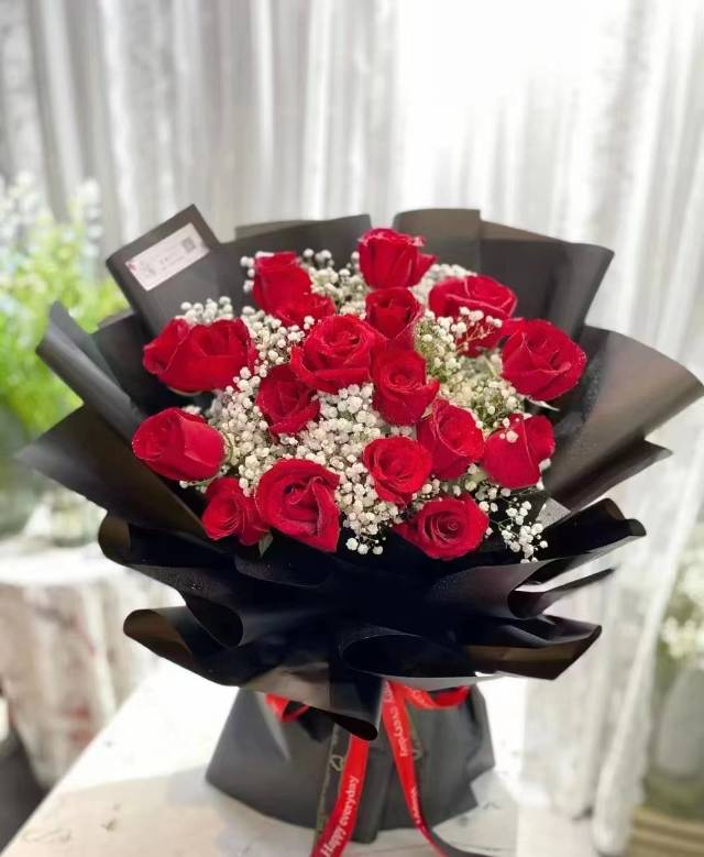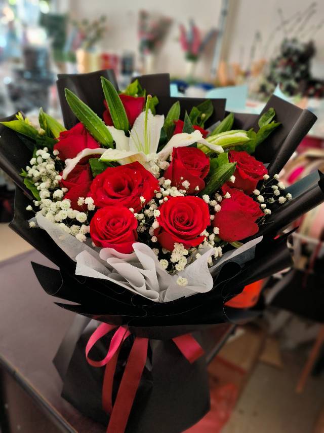 上海花千坊爱上海11朵红玫加一支多头白百合花束,如图包 |