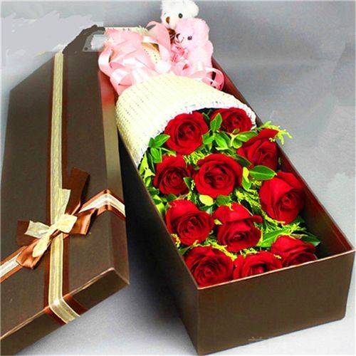 上海花千坊爱上海11朵红玫瑰2小熊礼盒装如图 |