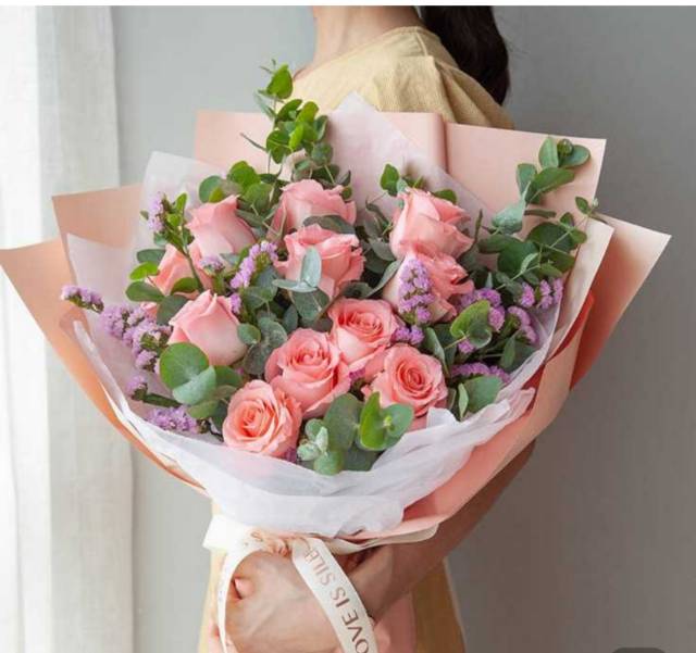上海花千坊爱上海11支粉玫鲜花束,如图包 |