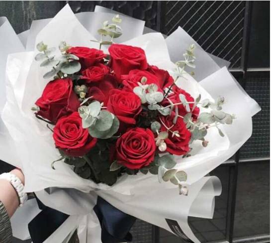 9朵红玫花束,如图包装大气好看,按时送达 |