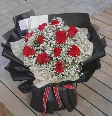 上海花千坊爱上海11支红玫瑰花束。按图包(不要满天星) |
