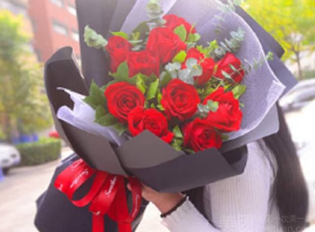 上海花千坊爱上海11朵红玫鲜花束,如图包 |