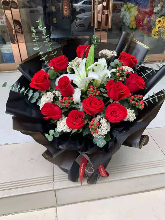 上海花千坊爱上海11支红玫瑰加一支多头白百花束,如图 |