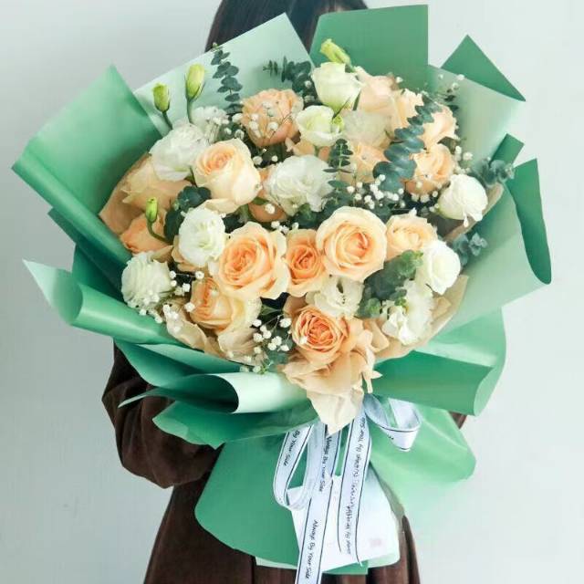 19朵香槟玫瑰花混搭桔梗花束 |