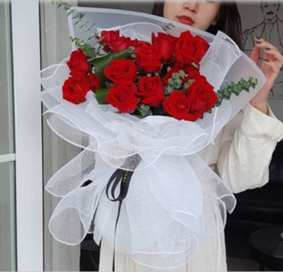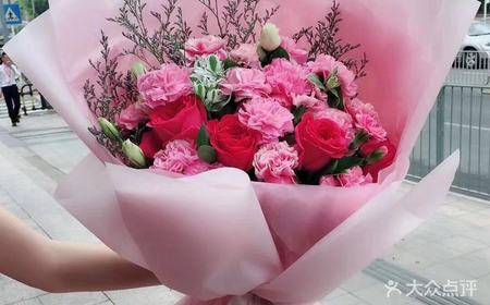 11朵粉色康乃馨4朵红玫瑰鲜花,如图 |