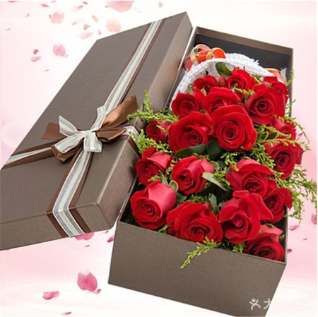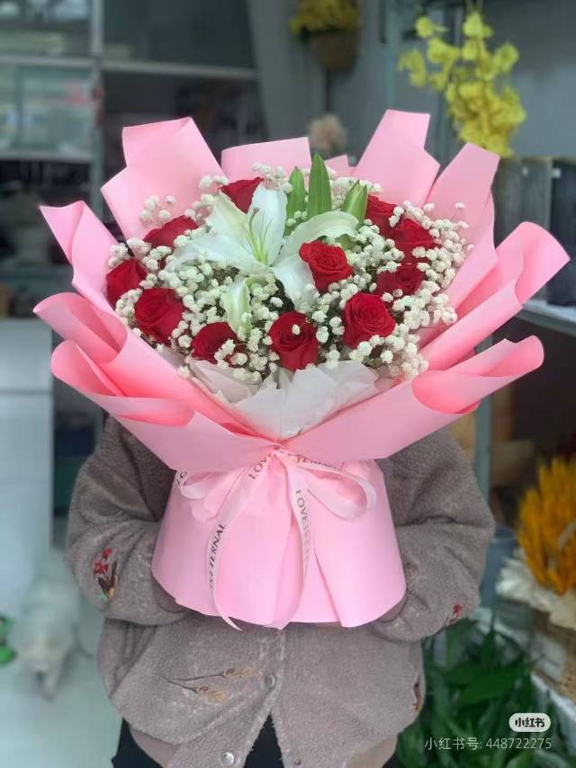 上海花千坊爱上海11朵红玫百合满天星花束如图 |