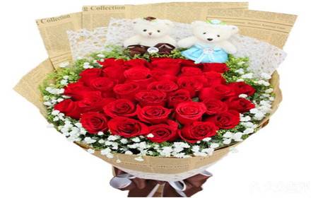 上海花千坊爱上海33支红玫瑰2小熊花束,如图 |