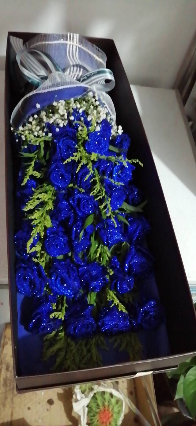 33朵蓝色妖姬礼盒,如图包装大气好看,有卡片 ,21号(周六)上午11点前送达。(送前电话联系) |