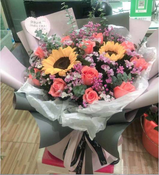 8朵向日加10朵香槟玫鲜花束 |