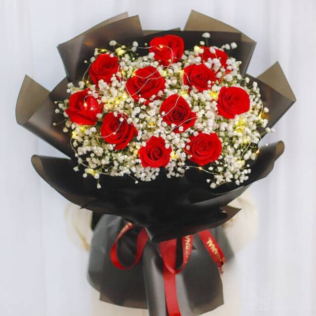 11红朵玫瑰花满天星花束 加灯 |