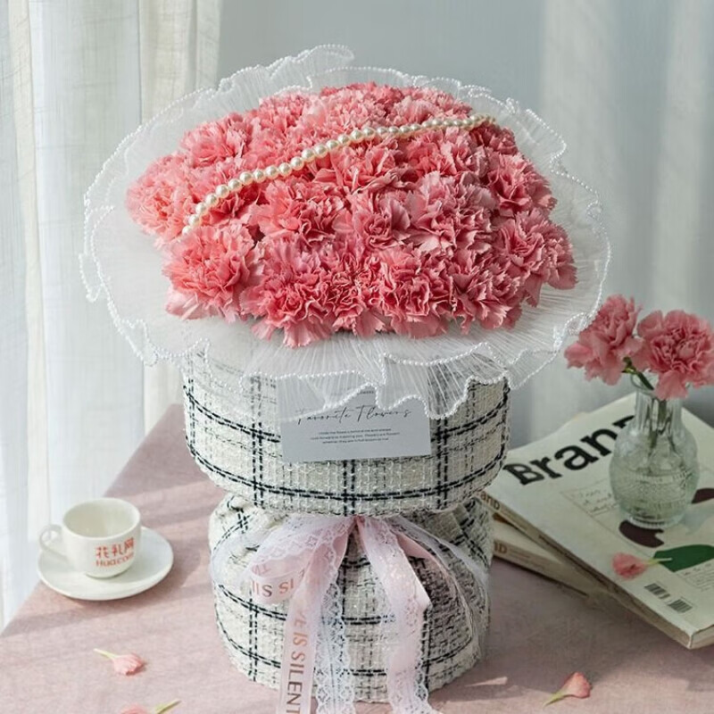 11支粉色玫瑰+满天星 |