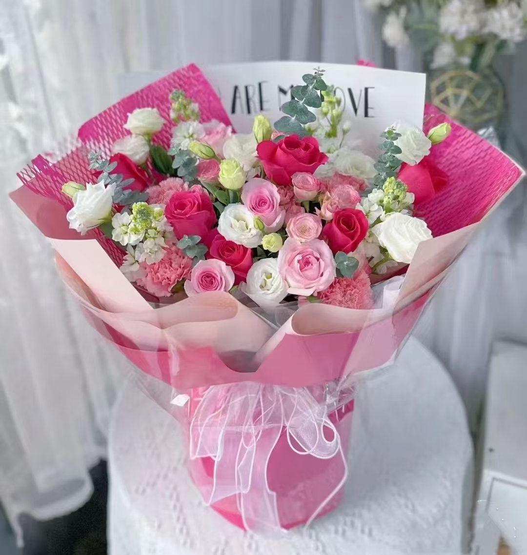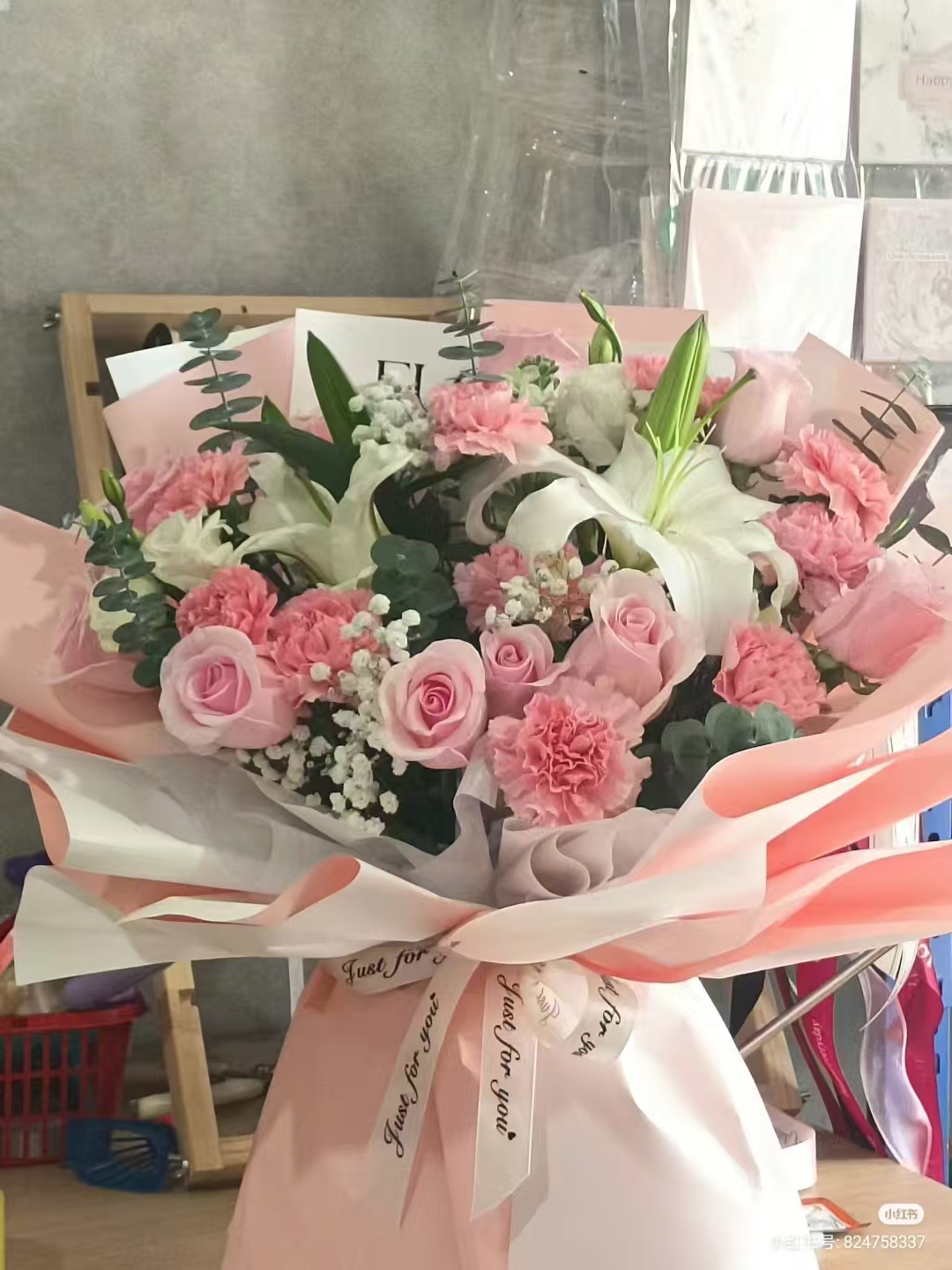 19红玫瑰小香风款+12支粉康乃馨2支多头百合花束(共2束) |