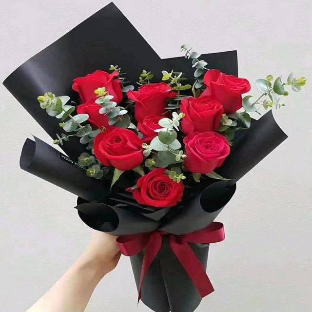 9朵红玫加满天星鲜花束 |
