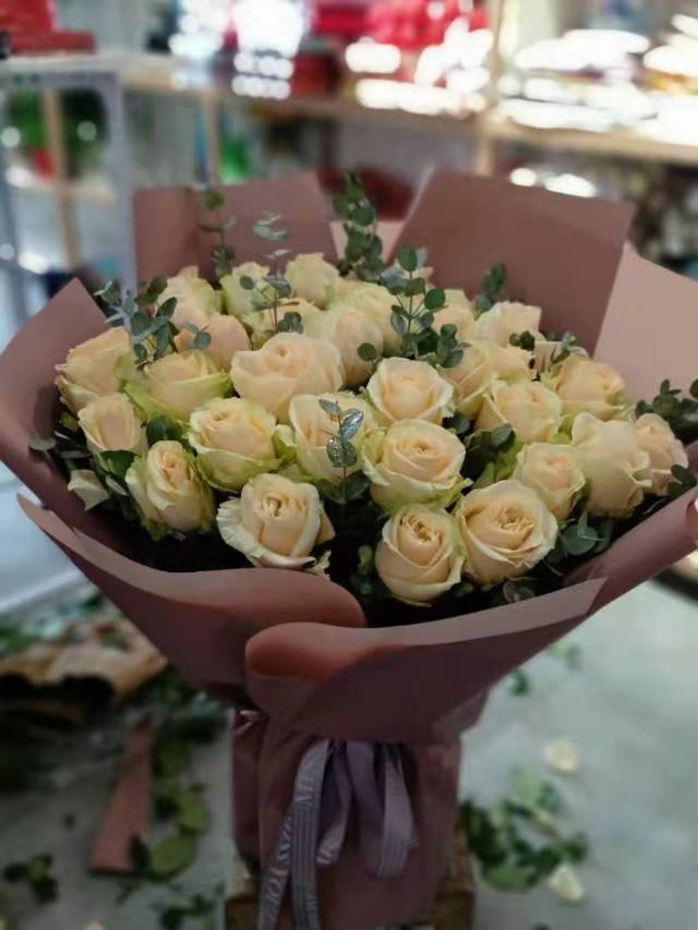 上海花千坊爱上海11支香槟玫瑰花束,如图 |