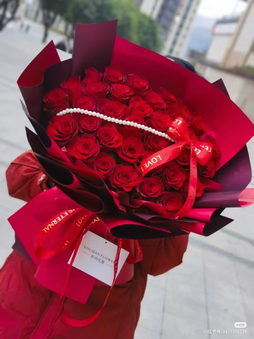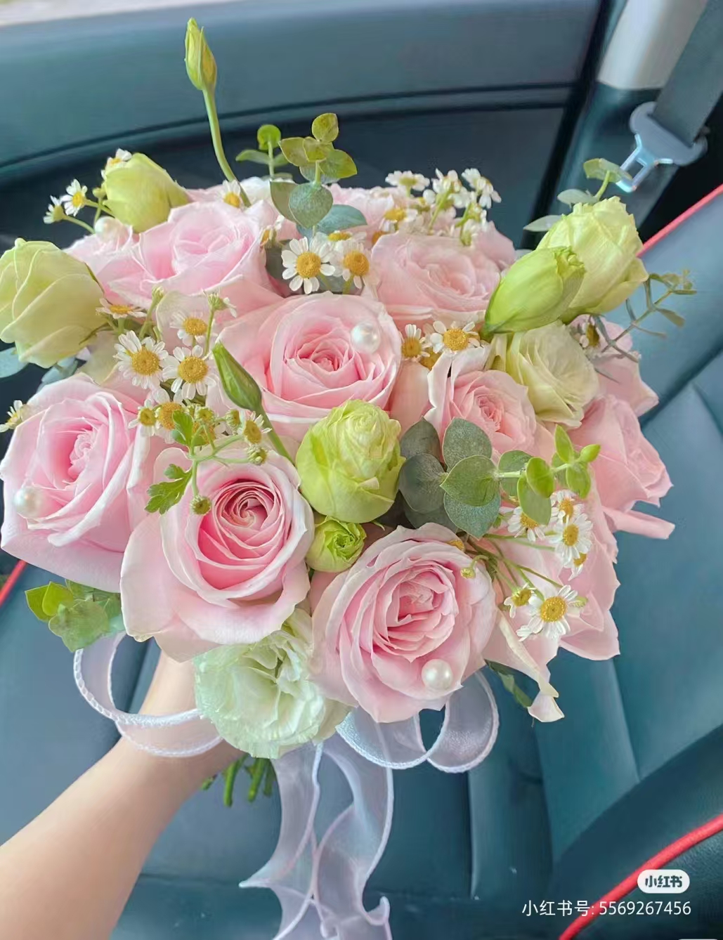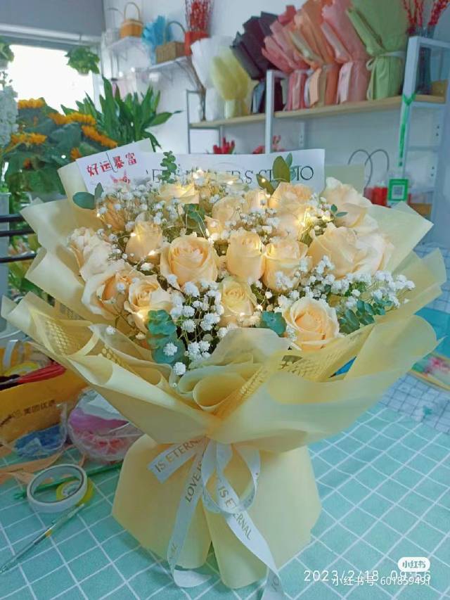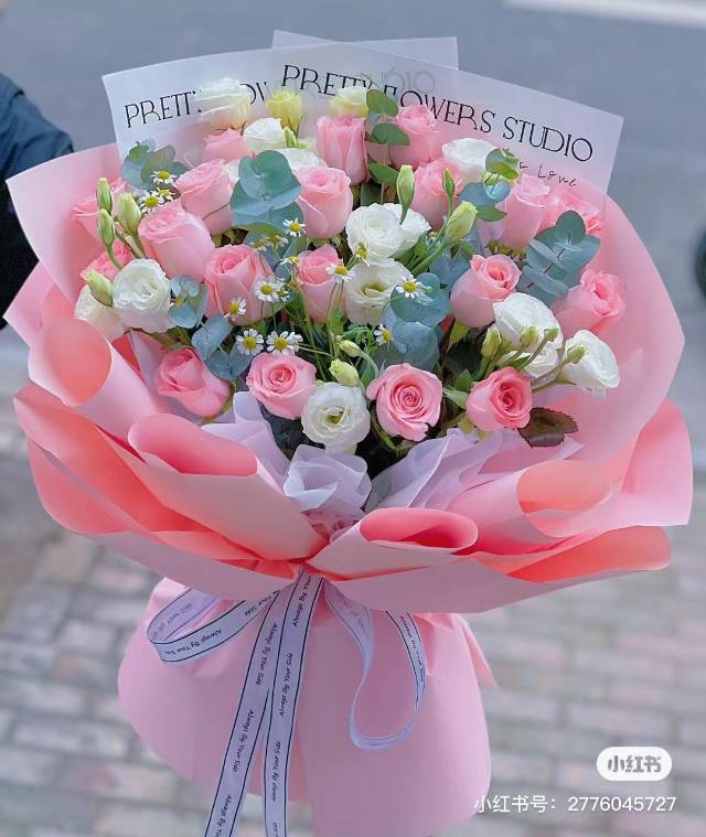 上海花千坊爱上海11支粉玫瑰2支黄百合花束,如图 |