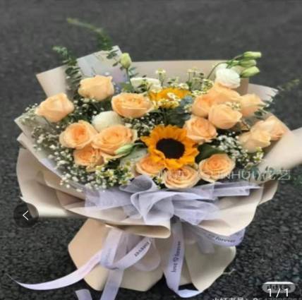 11支香槟玫瑰2向日葵混搭花束 数量:1 |