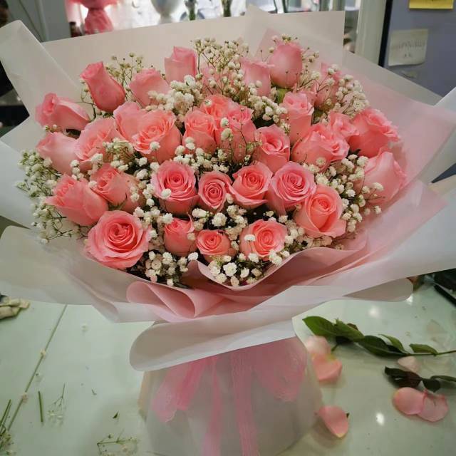 33支粉玫瑰满天星花束 |