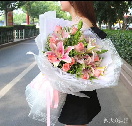上海花千坊爱上海19粉康乃馨2粉玫瑰1朵百合花束 |