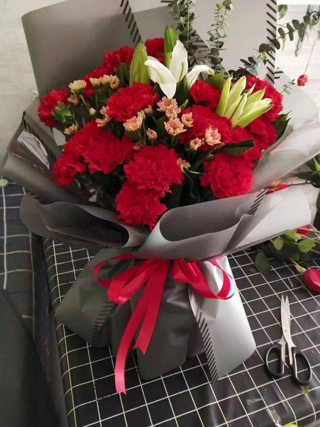 上海花千坊爱上海19支红康乃馨2支多头百合花束 |