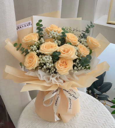 上海花千坊爱上海香槟玫瑰配洋桔梗新娘手捧花,按图做 |