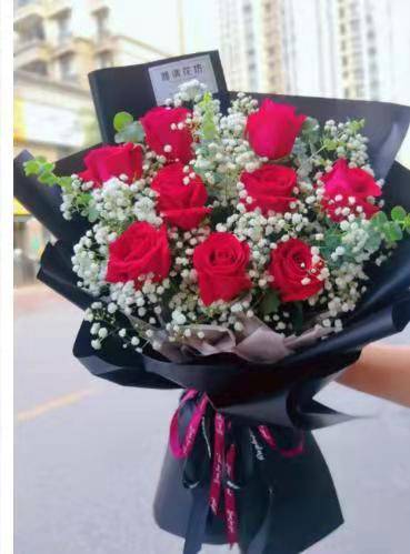 上海花千坊爱上海11朵粉玫瑰满天星花束 如图包装 |