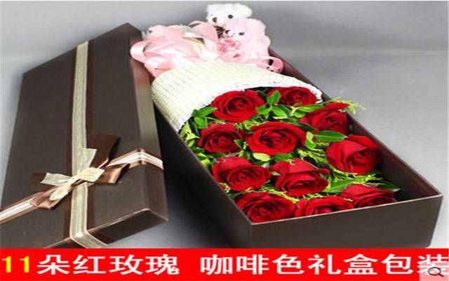 上海花千坊爱上海11朵红玫瑰2小熊礼盒装 |