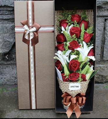 红玫瑰11朵8朵粉百合,有卡片,如图 |