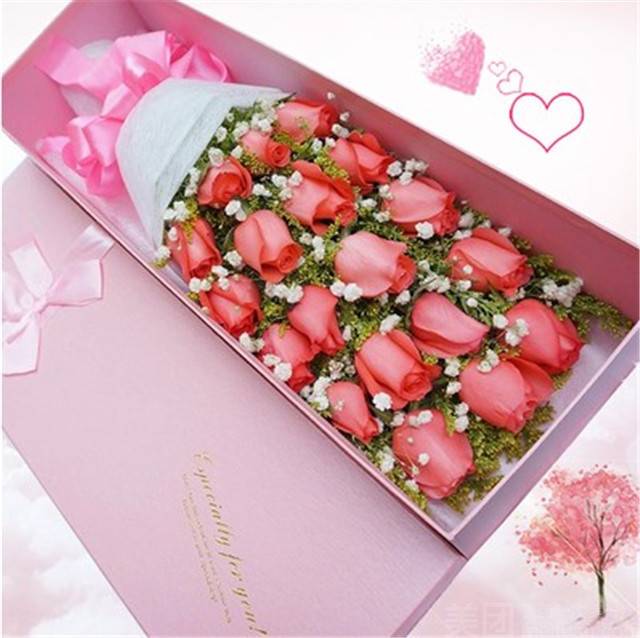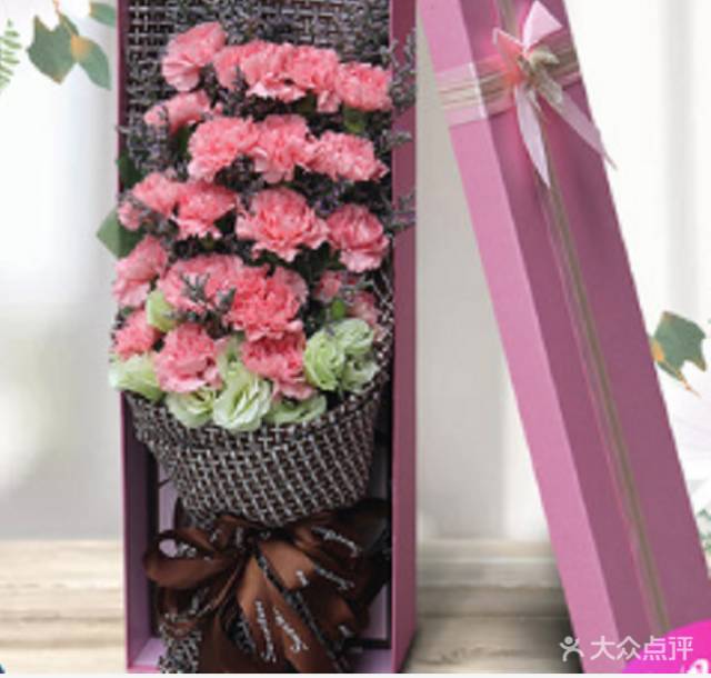上海花千坊爱上海19支粉康乃馨礼盒,如图 |